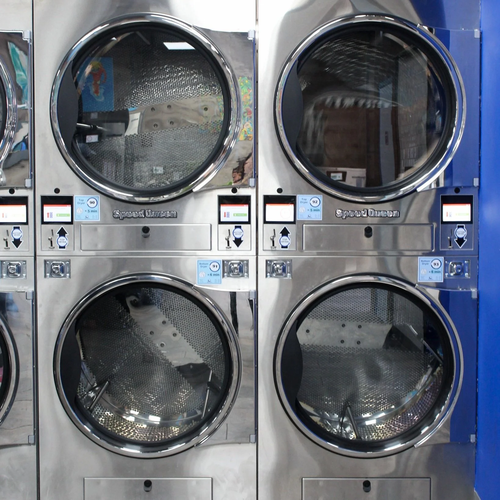 One of our standard dryers fits 4.5 loads (compared to 3 loads at other laundromats)! All dryers have multiple heat settings, burn-resistant technology, and reversing action every 4 mins. You can also use our dryers via coin or app.